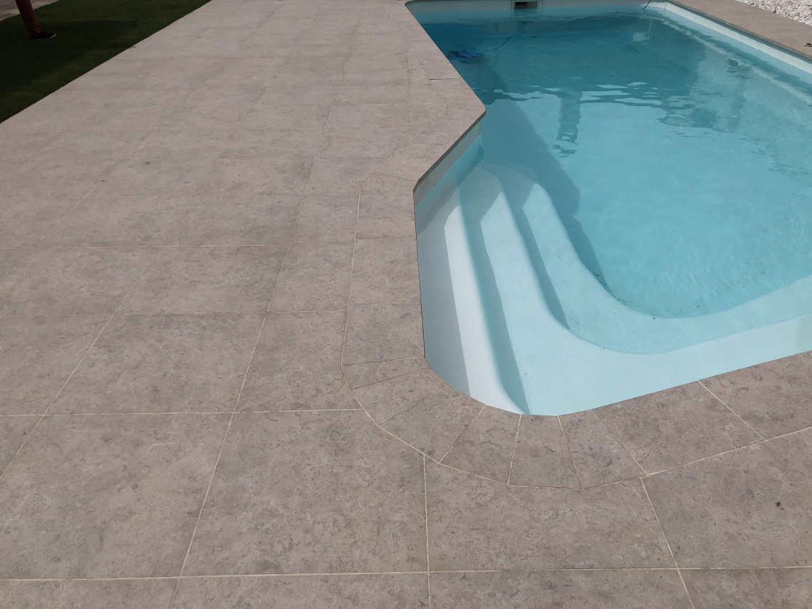 Coronación de piscina y solera en gres pórcelanico