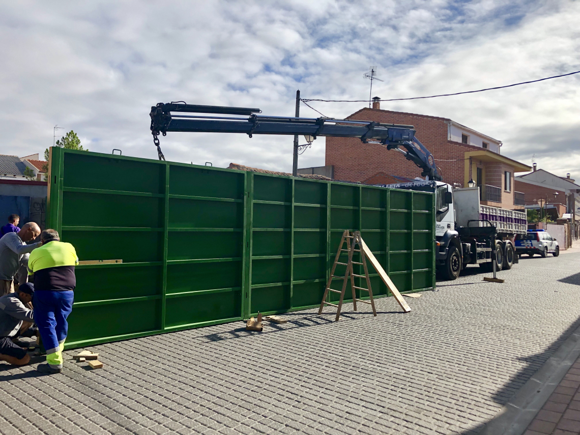 Servicio camión grúa colocando estructura en Pedrajas de San Esteban