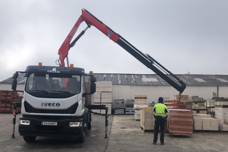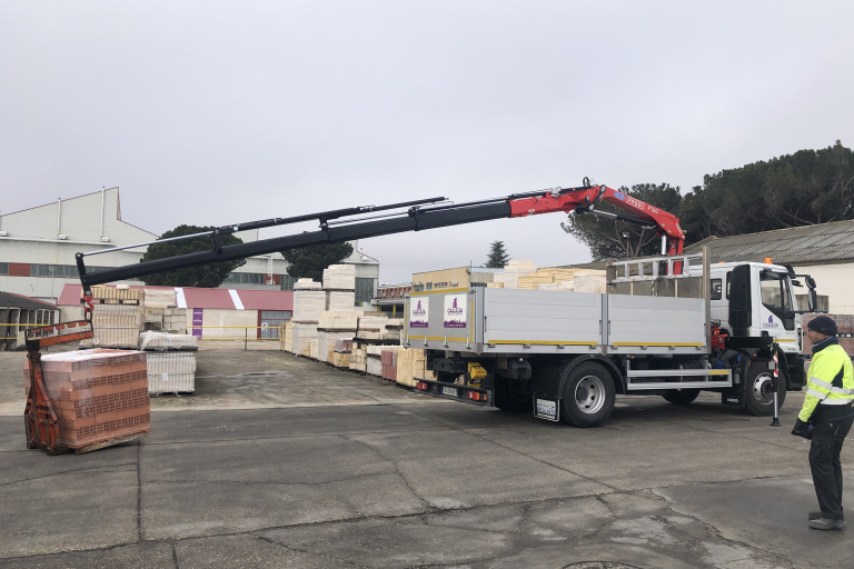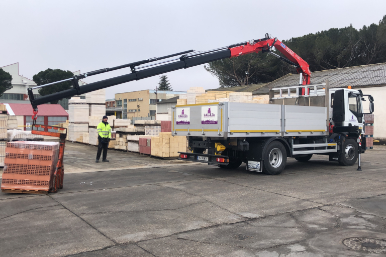 Disponemos de una flota propia de camiones adaptada a las necesidades de los materiales que transportamos, equipados con grúas y basculante para facilitar el transporte de todo tipo de mercancías, en especial las más pesadas.